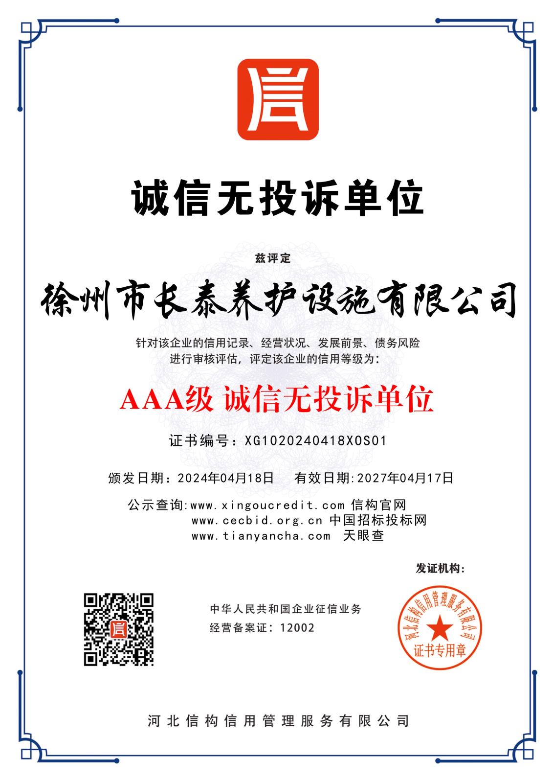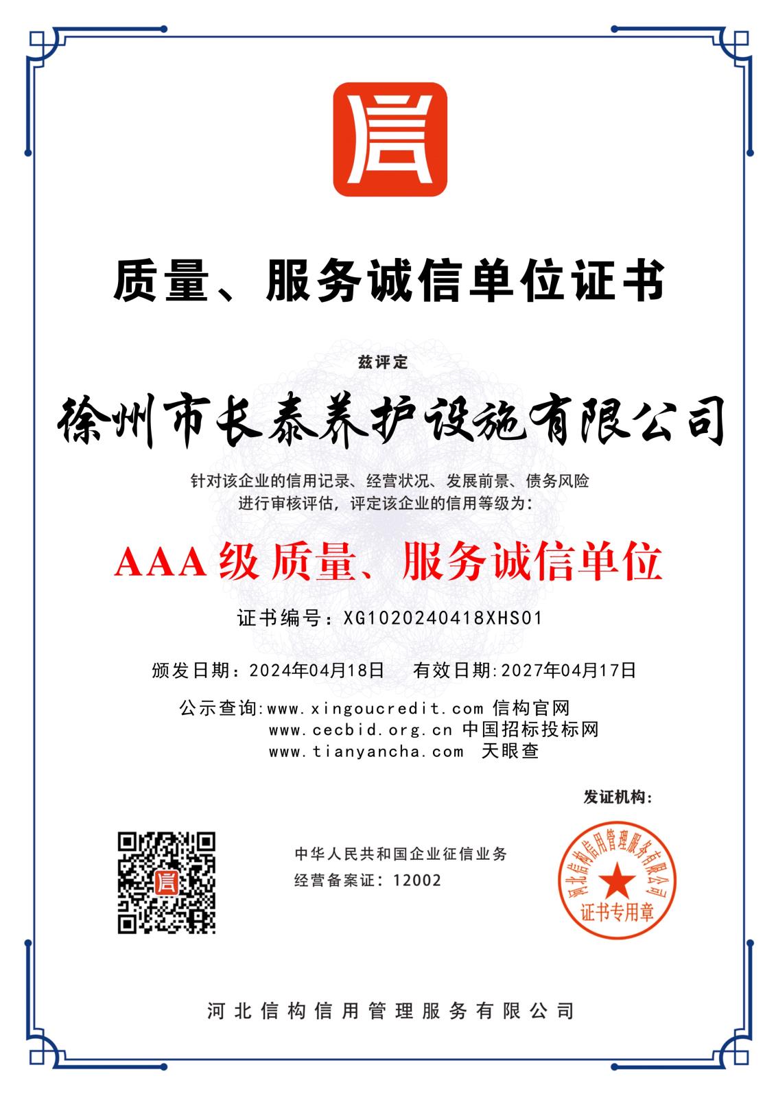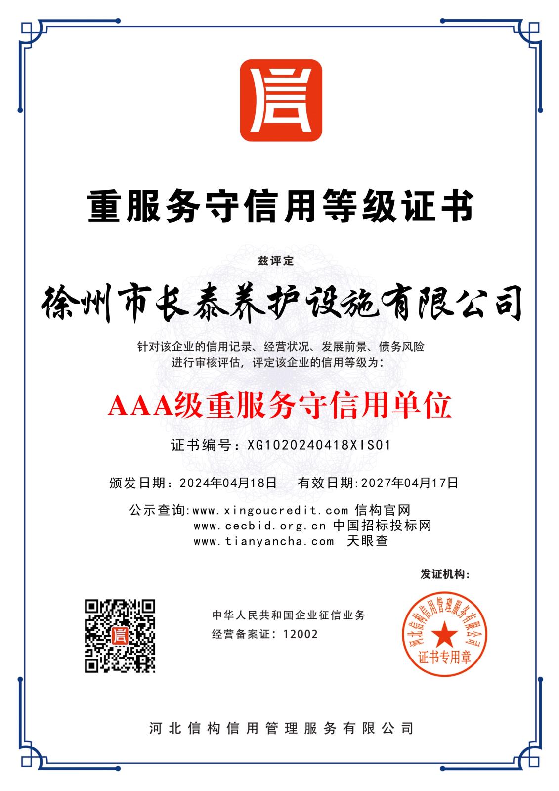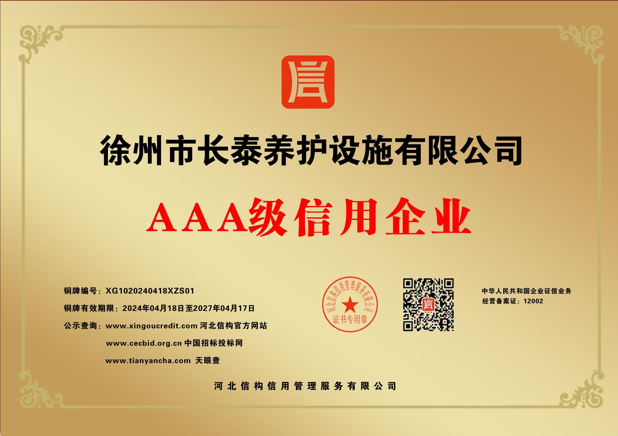 徐州長泰養(yǎng)護設施有限公司3A信用